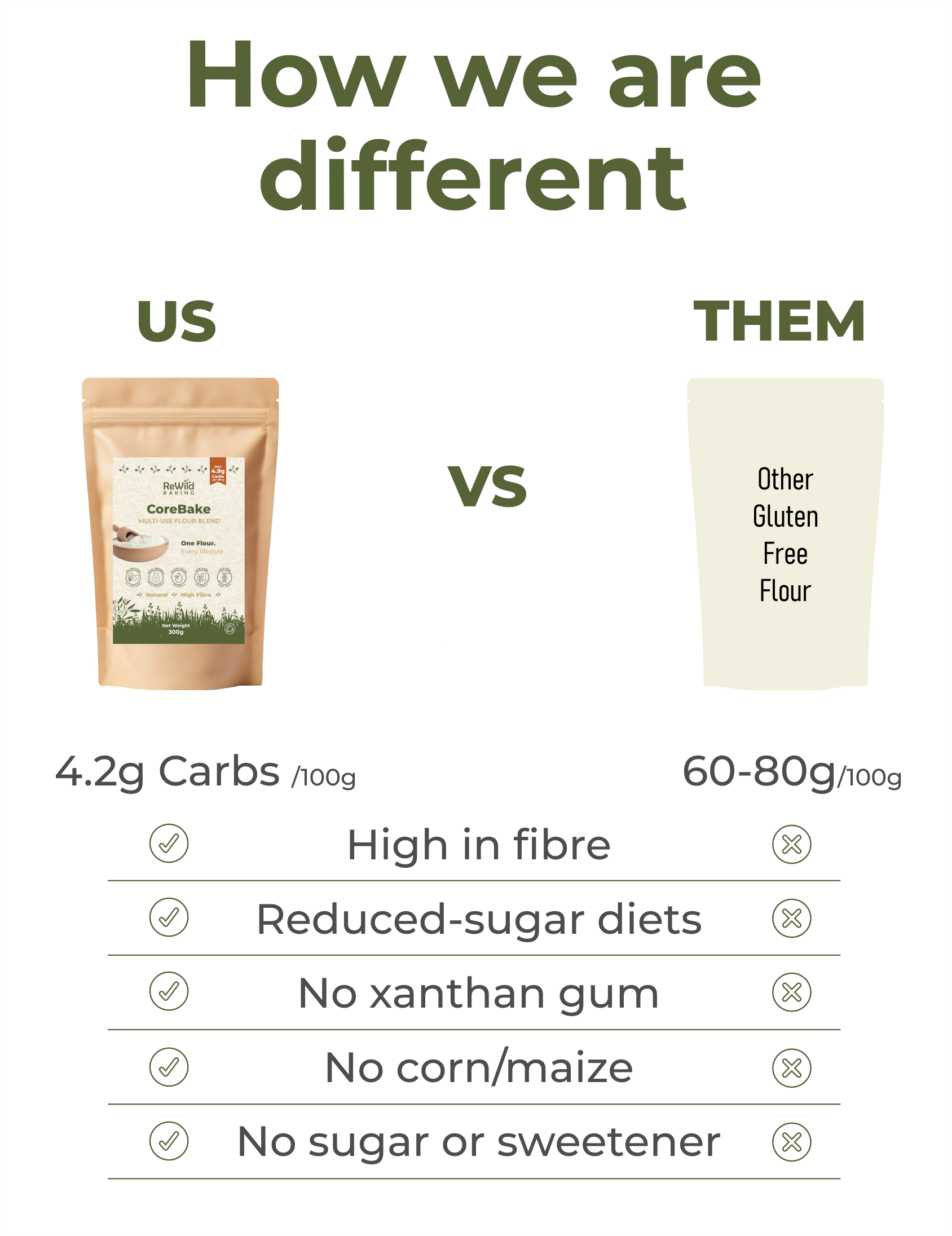 Start enjoying the amazing benefits of our low-carb, high-fiber flour mix today! CoreBake is perfect for all lifestyles and dietary needs. It will quickly become your kitchen essential – you'll wonder how you ever baked without it.