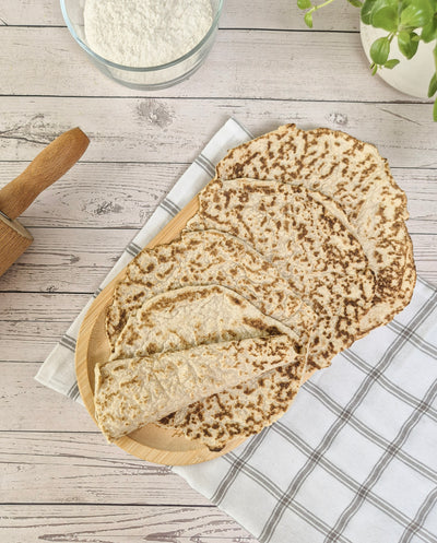 Made with CoreBake flour blend, these easy homemade wraps roll and fold without breaking, making them a versatile choice for any meal.
